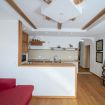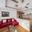 L'appartamento dispone di deposito, un bagno completo di doccia, bagno di servizio con wc e lavandino, lavatrice, cucina attrezzata, soggiorno, stube con sala da pranzo, una camera con due letti singoli ed una camera matrimoniale.