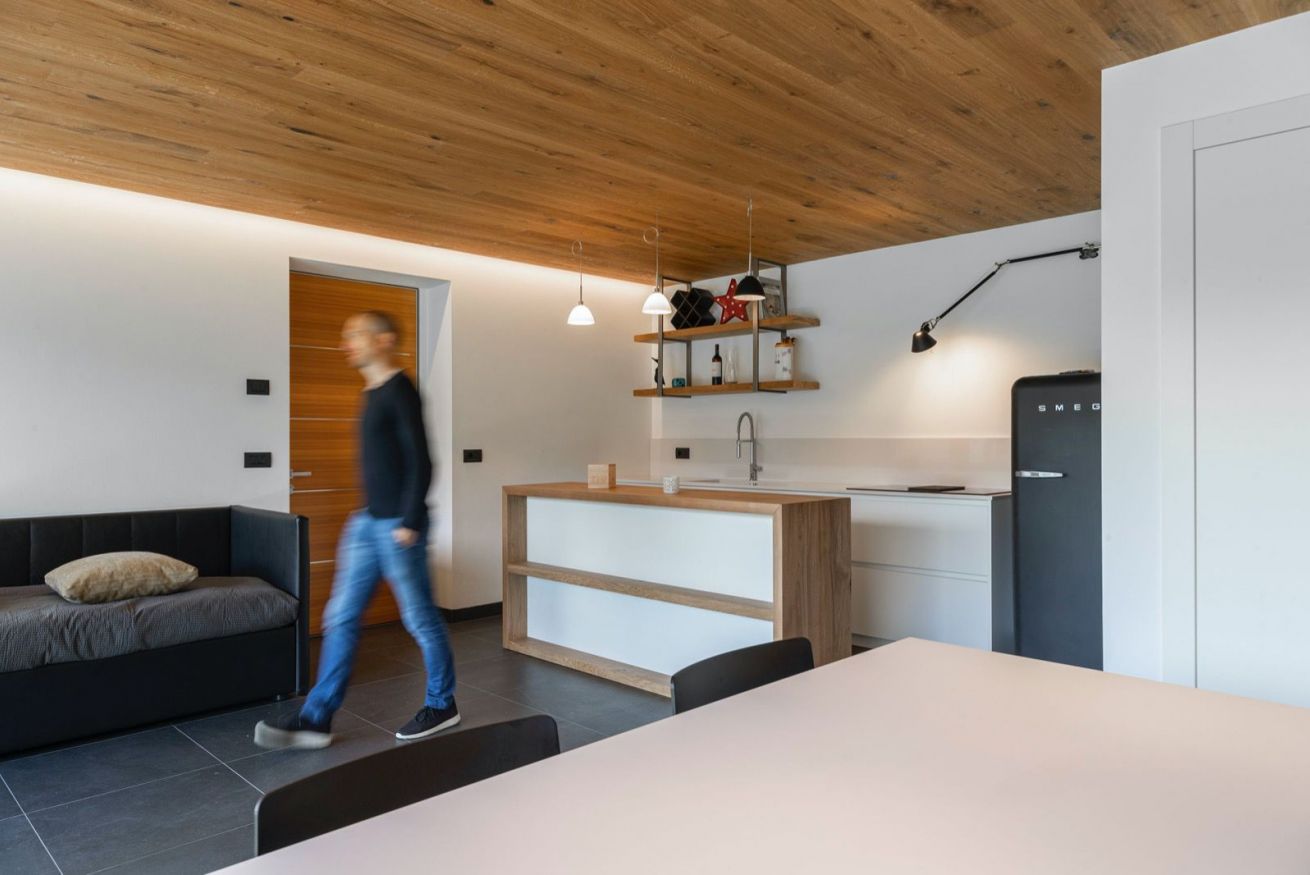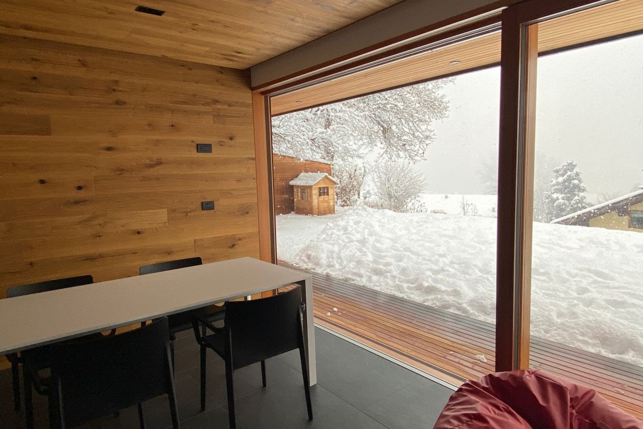 La casa è situata nelle vicinanze del centro di Castello e dalle grandi vetrate del soggiorno è possibile ammirare in tutta lo loro bellezza le cime della catena del Lagorai.