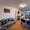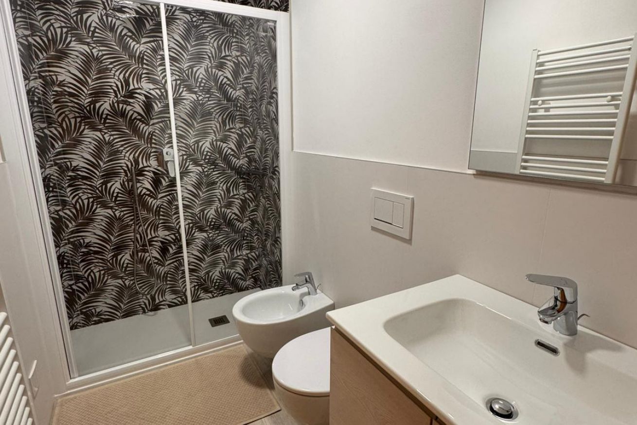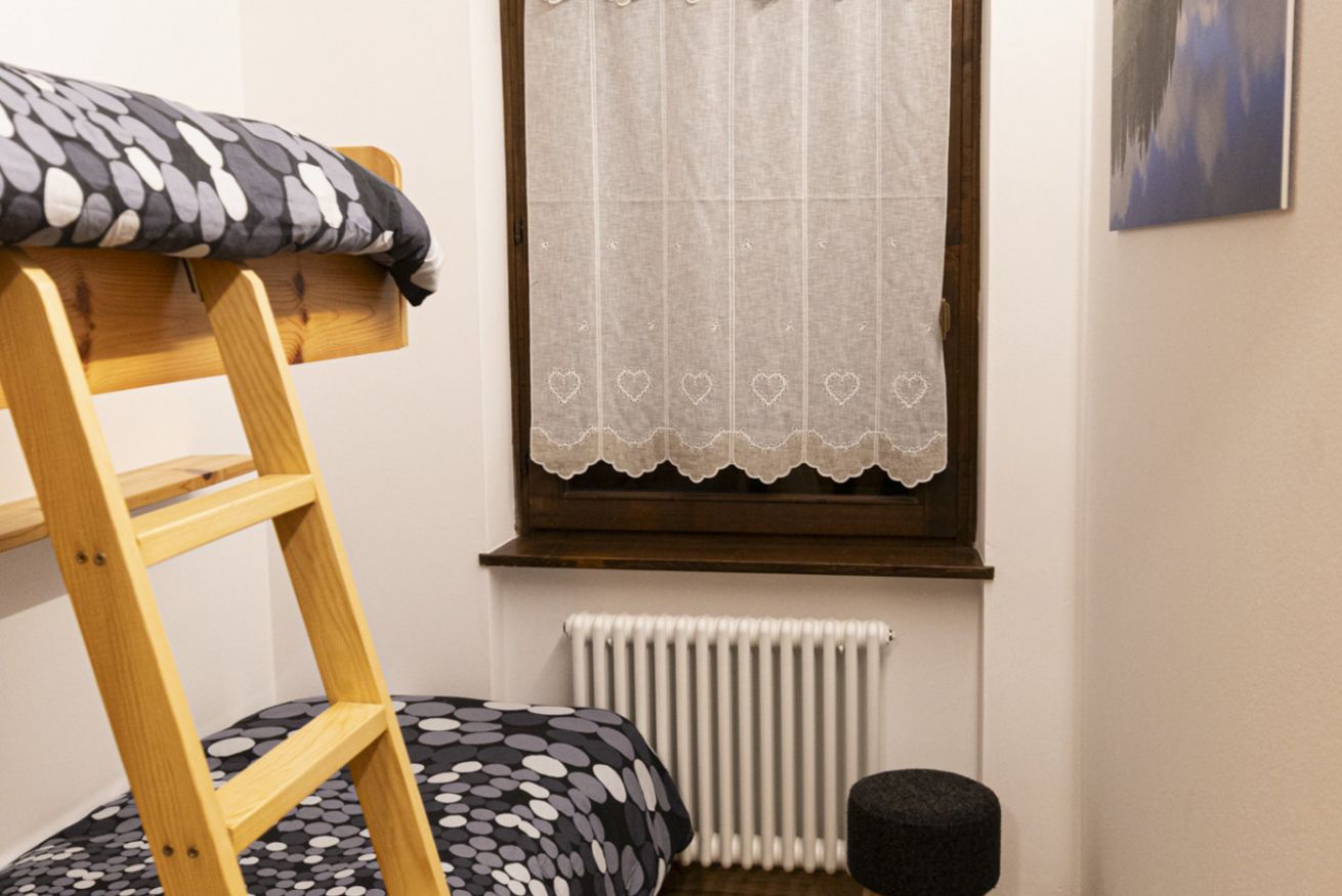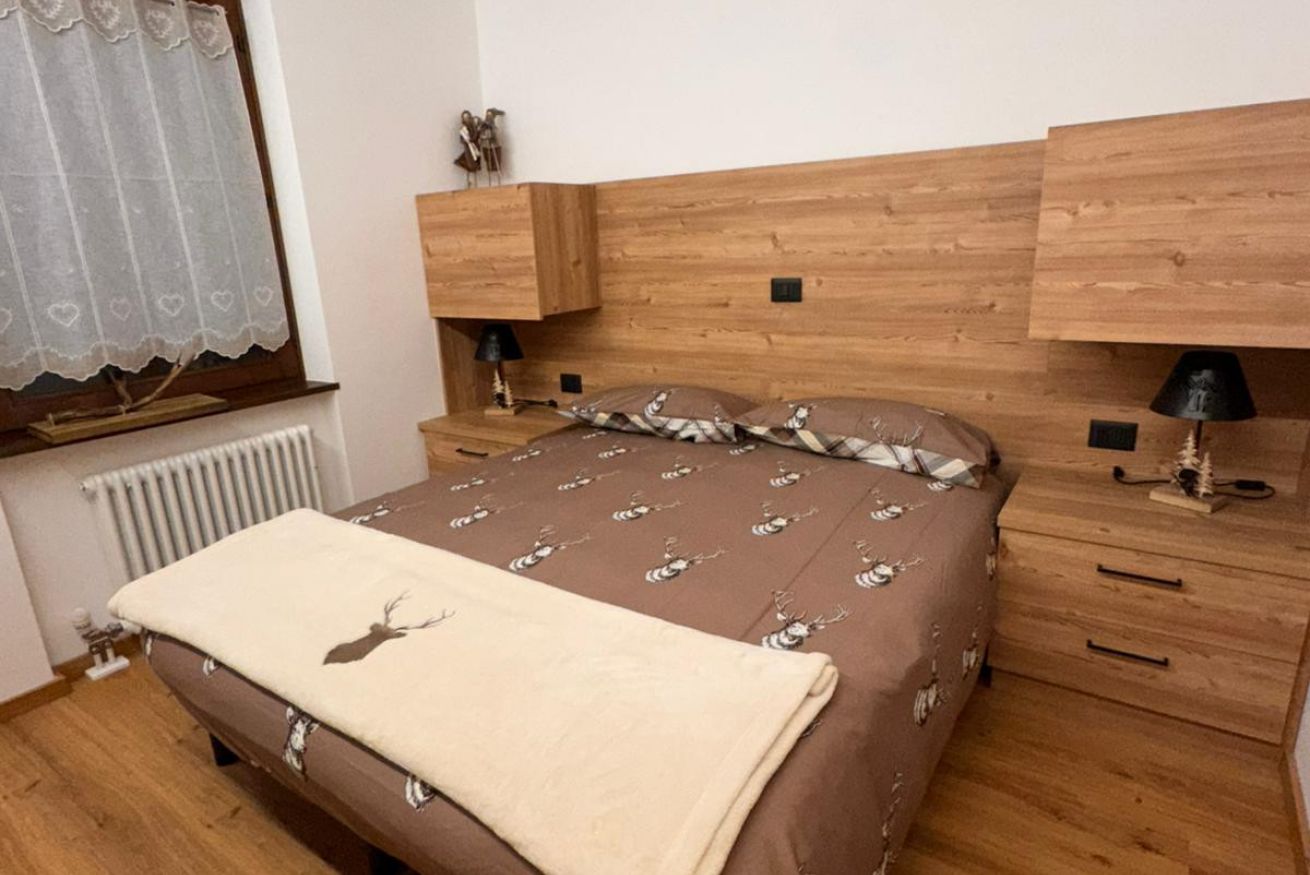 L'appartamento è composto di zona living con televisione, cucina attrezzata, una camera matrimoniale, una camera con letto a castello, bagno con doccia, ampio balcone con vista mozzafiato, posto auto privato in garage, deposito per sci e biciclette.